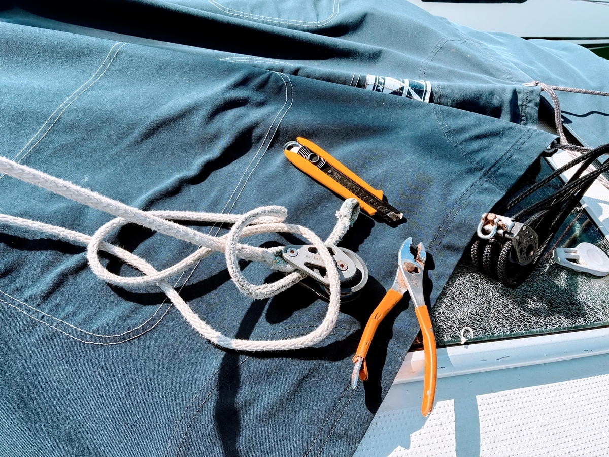 2025-11-20 バングシート交換 昨日に引き続きシートの交換。 古いシートもしっかりスプライスされていて取るのも一苦労。 結局切断。まあ古いからね。 どうにか完成。 エンジン屋さんの工具を見ていたら 買っちゃいました。 エンジン修理には必需品ですね。